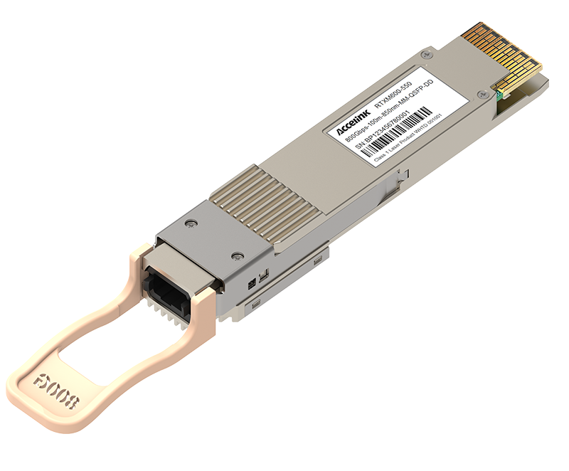RTXM600-308 400G QSFP112 VR4 transceiver modules are designed for use in 400 Gigabit Ethernet links on up to 50m of OM4 multi mode fiber. They are compliant with the QSFP112 MSA and IEEE 802.3db.The optical transceiver is RoHS compliant.